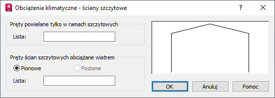 W przypadku gdy lista prętów fasad obciążanych wiatrem jest pusta, położenie pierwszego pręta na liście automatycznie włącza odpowiednie położenie obciążanych prętów: pionowe lub poziome.