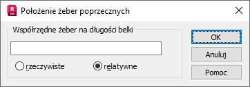 - Wprowadź współrzędne żeber poprzecznych na długości belki i określ, czy współrzędne są rzeczywiste czy względne do długości belki.