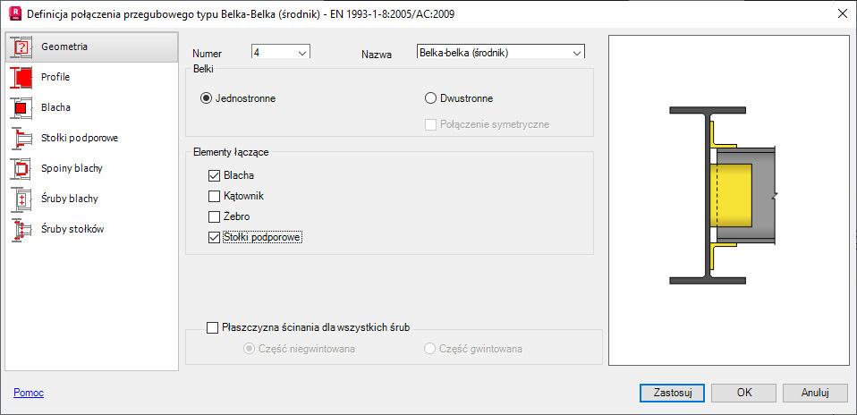 Opcje znajdujące się na zakładce Geometria pozwalają na zdefiniowanie podstawowych elementów połączenia: