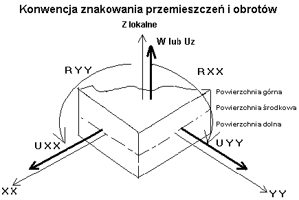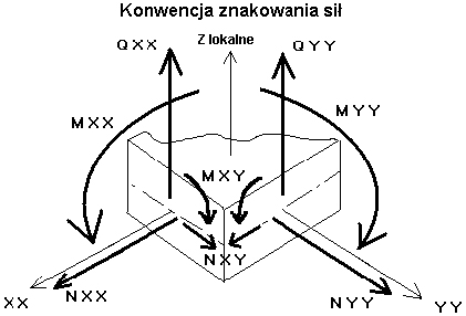 Poniżej przedstawiono dwa rysunki definiujące konwencję znakowania sił dla powierzchniowych elementów skończonych.