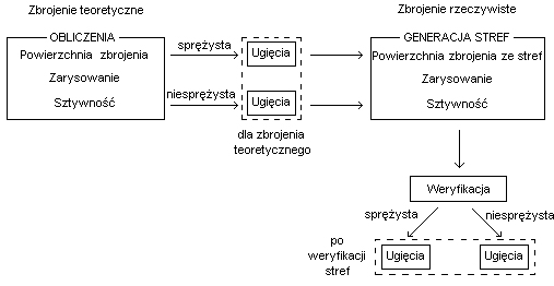 Po obliczeniu powierzchni zbrojenia, zarysowania, sztywności i ugięcia następuje weryfikacja powierzchni zbrojenia ze stref. Weryfikacji dokonuje się w celu uzyskania ostatecznej wartości ugięć. W oparciu o nowe powierzchnie przeliczane są zarysowania i sztywności. Więcej informacji na temat algorytmów obliczeniowych poszczególnych metod zawiera temat Metody obliczania ugięć w płytach / powłokach.