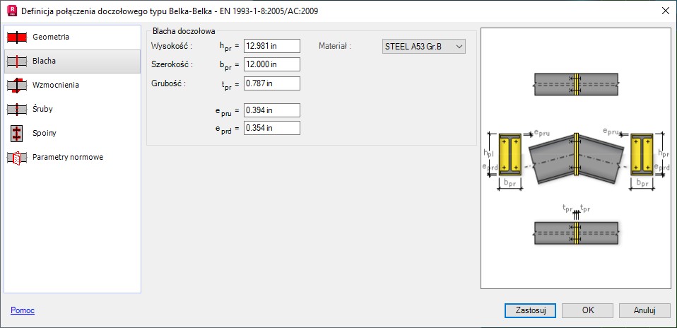 W zakładce Blacha określić można parametry blachy doczołowej.