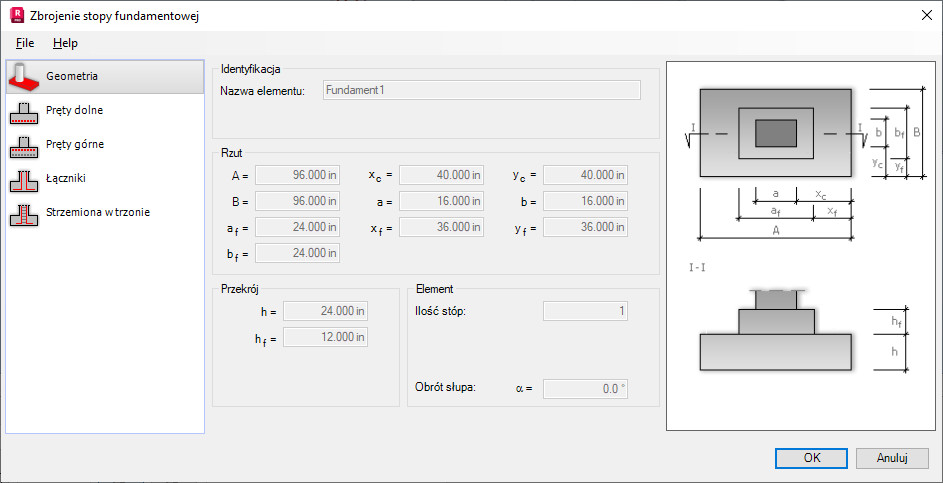 Zbrojenie stóp fundamentowych — rozszerzenie uruchamiane w programie Autodesk® Revit®.