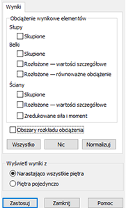 Można wybrać, które obciążenia wynikowe na elementach mają być wyświetlane: