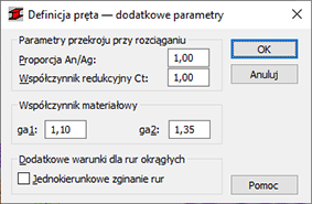 - Kliknij przycisk Więcej w oknie dialogowym Definicja pręta — parametry.