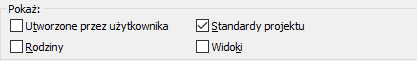 - W oknie dialogowym Zadania w polu Pokaż wybierz wyłącznie opcję Standardy projektu.
