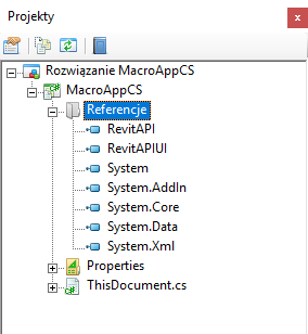 Poniższe czynności umożliwiają integrację makra z projektem środowiska Revit Macro.