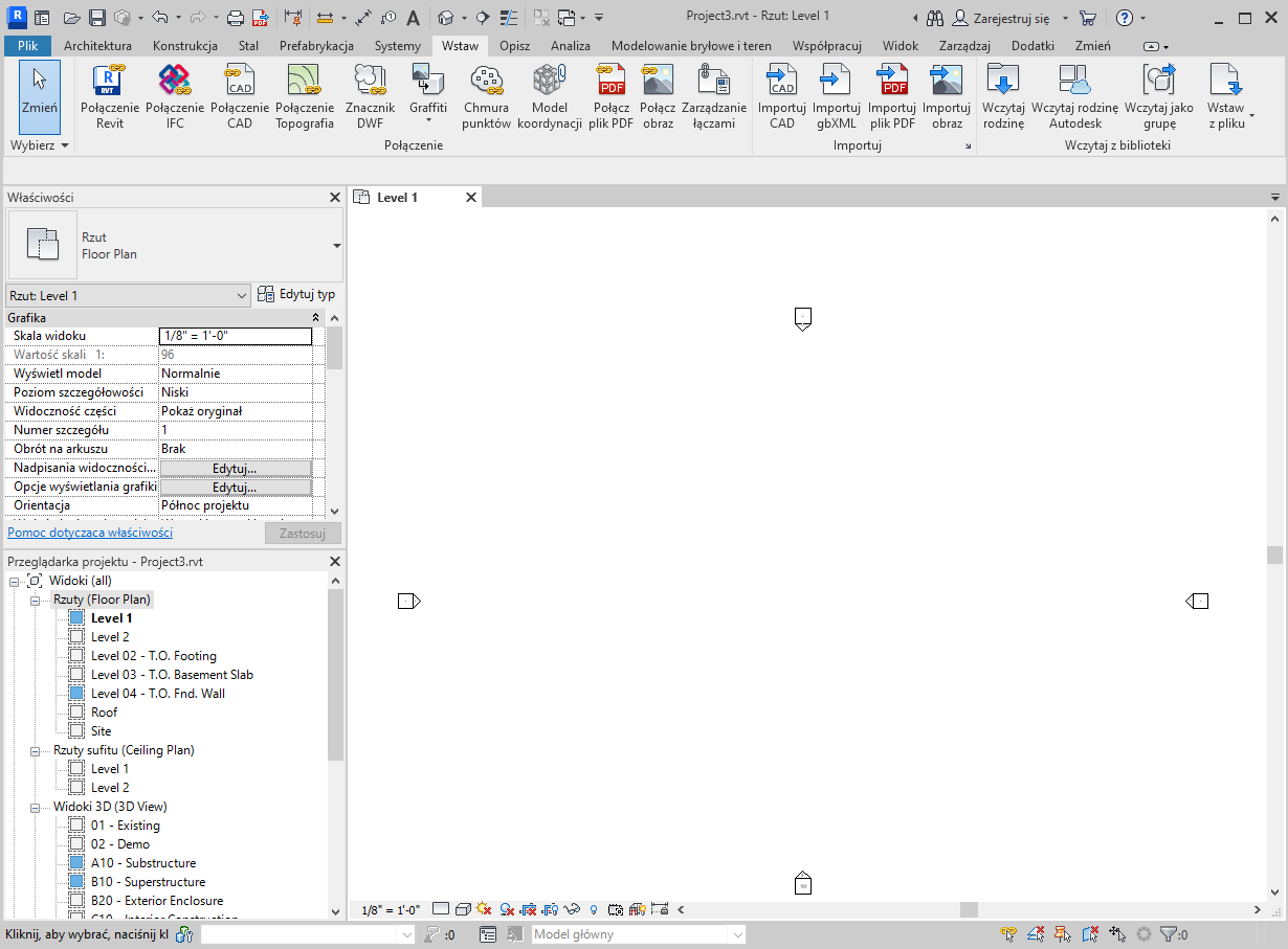 Na dole menu znajduje się lista otwartych widoków. Aktualnie wybrany widok w obszarze rysunku jest zaznaczony. |