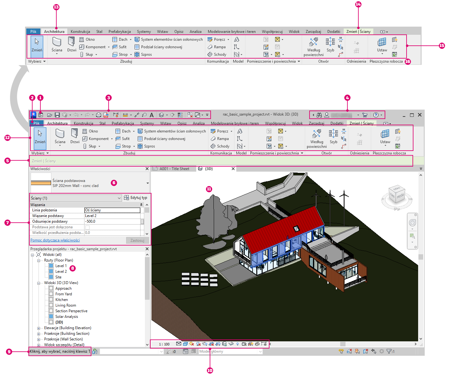 | 14 | Karta kontekstowa na wstążce, udostępniająca narzędzia odpowiednie do wybranego obiektu lub bieżącej operacji |