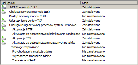 Uwaga: Inne usługi ról mogą być zainstalowane w zależności od wcześniejszego stanu serwera.