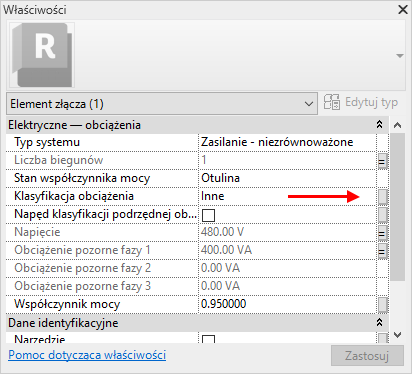 - Na palecie Właściwości kliknij przycisk znajdujący się na prawo od wartości klasyfikacji obciążenia.
