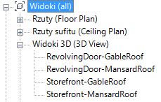 Na przykład nazwy poniższych widoków 3D wskazują warianty projektu, które będą wyświetlane w każdym widoku. (Zobacz rozdział Zmiana nazwy widoku).