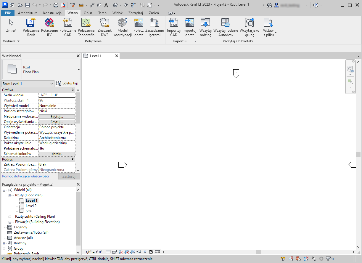 Na dole menu znajduje się lista otwartych widoków. Aktualnie wybrany widok w obszarze rysunku jest zaznaczony. |