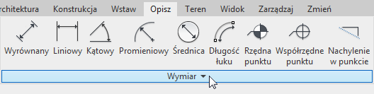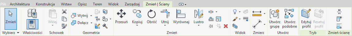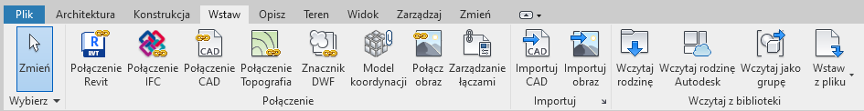 Wstążka jest wyświetlana podczas tworzenia lub otwierania pliku. Zawiera ona wszystkie narzędzia potrzebne do utworzenia projektu lub rodziny.