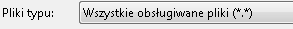 Filtry (np. Pliki typu w obrazie okna dialogowego) można konfigurować. Filtry oparte na typie pliku, wyrażeniu regularnym lub dowolnym innym niestandardowym algorytmie można dodawać do pola kombi. ![]() |