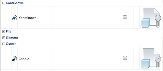 Element sterujący przeglądarki w pełni obsługuje elementy niestandardowe. Wszystkie funkcje działające na plikach i folderach również działają na elementach niestandardowych. ![]() |