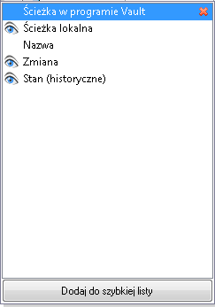 Element sterujący przeglądarki programu Vault służy do wyświetlania szczegółowych informacji na temat elementów przechowywanych w repozytorium. Obsługuje on wszystkie typy elementów i właściwości.