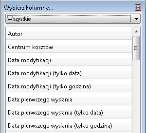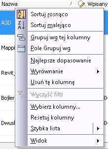 Menu kontekstowe każdego nagłówka kolumny zawiera opcje umożliwiające dostosowanie informacji przedstawionych w tej kolumnie. ![]() |
