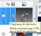 Kolumny w siatce można dostosować, tak aby komórki w nich były „aktywne”. Te komórki mogą mieć niestandardową etykietę narzędzi. Operację niestandardową można wykonać, gdy użytkownik kliknie etykietę narzędzi, przytrzymując klawisz CTRL. Jak pokazano na poniższej ilustracji pliki przypisane do elementu mogą korzystać z mechanizmu komórki aktywnej w celu tworzenia łączy do tego elementu. ![]() |
