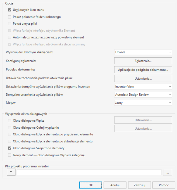 - Ustawienia domyślne wyświetlania plików programu Inventor