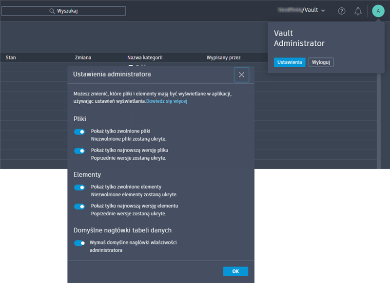 - Włącz opcję Pokaż tylko najnowszą wersję pliku, aby wyświetlić tylko najnowsze wersje plików. Jeśli ta opcja jest wyłączona, wyświetlane są wszystkie wersje plików.