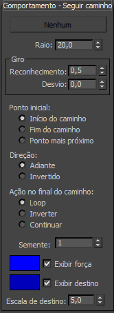 Nota: É possível variar os comportamentos entre Comportamentos - seguir caminho diferentes que usam as mesmas configurações de Visibilidade e Desvio alterando o valor Semente.