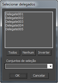 A caixa de diálogo Selecionar delegados permite designar delegados a serem atribuídos a equipes usando a caixa de diálogo Equipes e atribuições de comportamento para atribuir comportamentos de multidão.