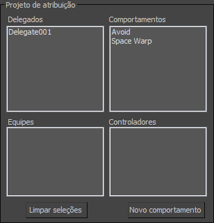 Dica: Com exceção dos comportamentos, é possível escolher apenas um item a partir de qualquer lado desse grupo. Para atribuir o mesmo comportamento a mais de um delegado, o método mais eficiente é utilizar o