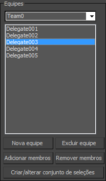 - Adiciona uma equipe à lista e abre a caixa de diálogo Selecionar delegados para permitir a especificação de novos membros para a equipe.