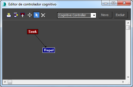 O editor de controlador cognitivo permite combinar comportamentos em estados. Mais importante ainda: permite sequenciar diferentes comportamentos e combinações de comportamentos usando diagramas de estados, em que as condicionais gravadas no MAXScript impõem alterações no comportamento.