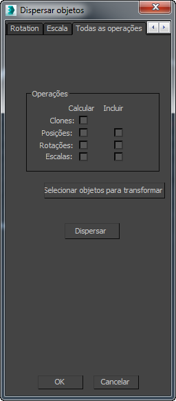 - Clique neste botão para produzir um conjunto de localizações para todos os objetos dispersos; isto é, objetos clonados ou os objetos selecionados com o botão Selecionar objetos para transformar.