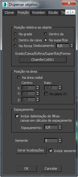 Os objetos clonados são criados todos na mesma localização; para distribuí-los, defina as opções de distribuição no painel Posição e, depois, clique no botão Gerar localizações.