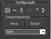 Na primeira vez que você adicionar um comportamento na cena usando esse painel de comando, uma nova implementação aparecerá para esse comportamento, abaixo da implementação Configuração. Esta implementação permite que você altere as configurações para o comportamento. Para exibir a Implementação para um comportamento diferente na cena, selecione-o a partir da lista suspensa no Grupo Comportamentos.