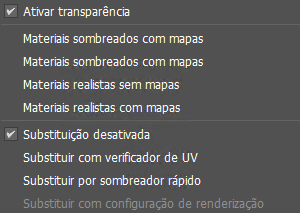 - Substitui materiais com a configuração especificada de material do agente de renderização. Essa opção ficará indisponível se não tiver suporte pelo agente de renderização atual.