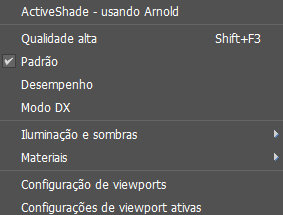 Use esse menu para escolher opções de qualidade visual e configurações de viewport globais para exibições Nitrous.
