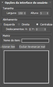 Estas são as opções para controles que permitem ao usuário escolher uma opção nomeada de uma lista. As opções para os três tipos de IU Matriz são as mesmas. Elas diferem em como aparecerão na implementação Atributos personalizados. Os tipos são: