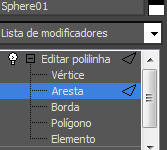 Os objetos com uma hierarquia de subobjeto, como polígonos editáveis, também mostram uma hierarquia recolhível na pilha de modificadores.