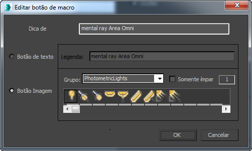 [lista de ícone rolável] Mostra os ícones disponíveis para o grupo escolhido. Para atribuir um ícone ao botão da barra de ferramentas, realce-o nessa lista e, em seguida, clique em OK.