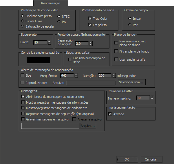 Nota: Quando Não suavizar serrilhado em plano de fundo está ativada, faça a renderização somente contra um plano de fundo negro.