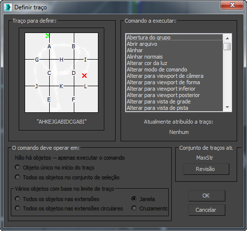 Lista todos os comandos aos quais é possível atribuir um traço. Selecione um comando e clique em OK para atribuir o traço exibido na grade ao comando selecionado. Dependendo do tipo de comando selecionado nesta lista, diversas opções estão disponíveis no grupo Comando deve operar em.