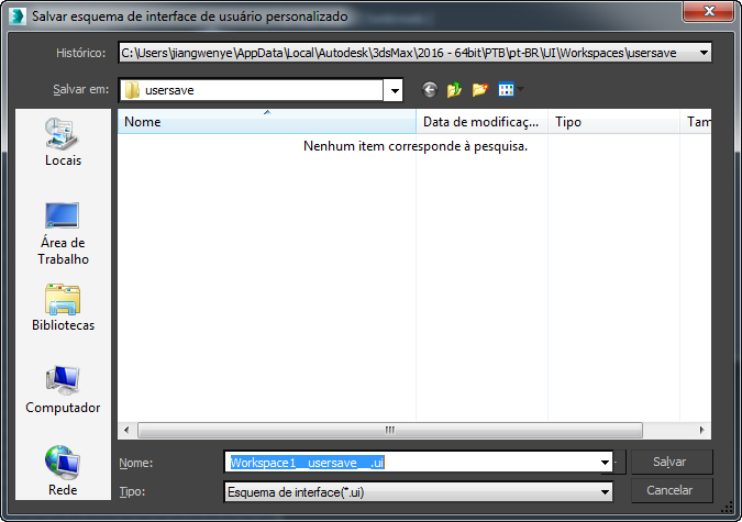 Esta caixa de diálogo padrão permite a você salvar seu esquema UI personalizado.