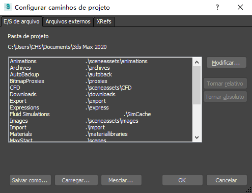 Caminho para maxstart.max, que oferece configuração de cena inicial de 3ds Max.
