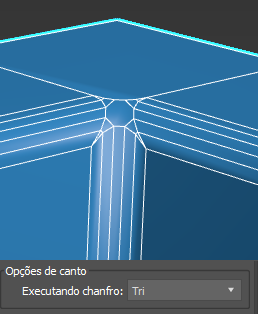 Nota: Quando a opção Chanfragem é definida como cantos chanfrados Tri, a opção Limitar efeito é sempre aplicada. Esta configuração permanecerá em vigor na mudança de cantos chanfrados Tri para outros cantos chanfrados, portanto deve ser desativada explicitamente.
