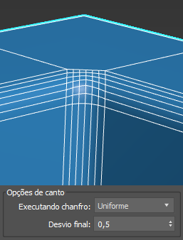 - Bordas selecionadas: chanfra as arestas selecionadas, independentemente do nível de subobjeto atual.