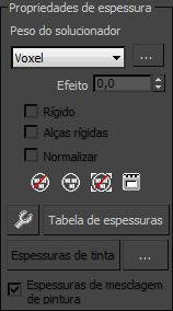 - Mostra a caixa de diálogo Ferramenta Espessura, que oferece ferramentas de controle para ajudar você a atribuir e mesclar espessuras em vértices selecionados.