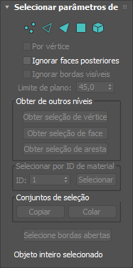 Clicar em um botão aqui é o mesmo que selecionar um nível de subobjeto na pilha do modificador. Clique no botão novamente para desativá-lo e retornar para o nível de seleção de objetos.