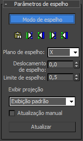 Dica: Você pode usar as opções de Positivo e Negativo para projetar temporariamente a exibição dos vértices de um lado para o outro lado de maneira que seja possível ver como os vértices são alinhados. Isto pode ser útil ao determinar as configurações do Plano de espelho para uma malha assimétrica.