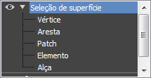 Os ícones na parte superior da seleção suspensa permitem especificar o método de seleção de face. Clicar em um botão daqui é o mesmo que selecionar um tipo de subobjeto na pilha modificadora. Clique no botão novamente para desativar e retornar para o nível de seleção de objetos.