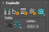 Define o limite de solda: o raio no qual a solda utilizando Solda selecionada e Soldar subobjeto selecionado tem efeito (veja anterior). O valor utiliza a distância do espaço UV. Padrão=0,01. Faixa=0 a 10.