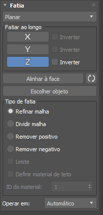 A seleção de um tipo de fatia define como o plano de fatias afetará a geometria ao qual foi aplicado.